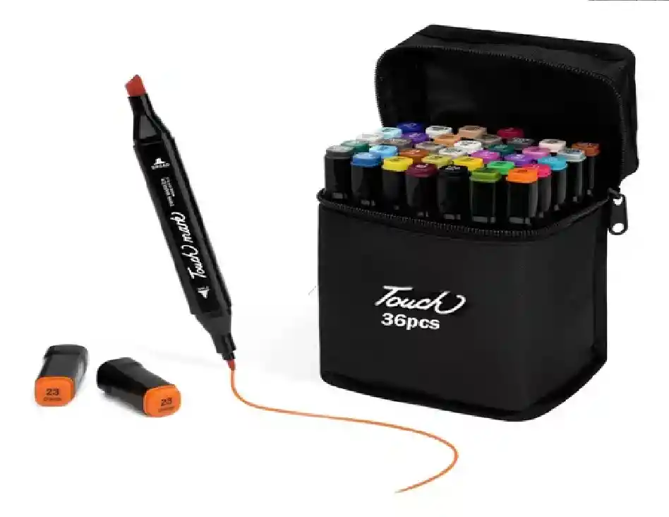 Set de marcadores de doble punta de 36 piezas: la herramienta perfecta para artistas, estudiantes y aficionados al diseño. Cada marcador cuenta con dos puntas, una fina para trazos detallados y escritura precisa, y otra gruesa para colorear, sombrear y crear efectos dinámicos. La tinta es de alta calidad, de secado rápido y resistente a borrones, garantizando resultados vibrantes y duraderos. Con una amplia gama de colores, este set es ideal para ilustraciones, lettering, manualidades y más. Presentado en un práctico estuche, facilita la organización y el transporte para que tu creatividad te acompañe a cualquier lugar.