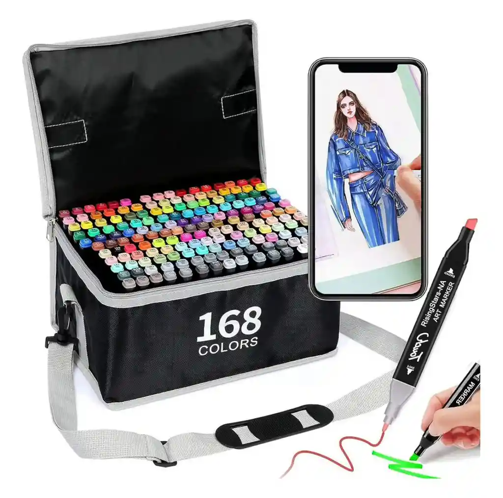 * 168 Colores - Satisfacer Todas las Necesidades: Los marcadores doble punta pincel vienen en 168 colores, una variedad que puede satisfacer sus necesidades de diferentes colores. Se secan rápidamente y no es fácil de desvanecer, lo que los hace perfectos para el diseño de escritura, dibujo (animación / paisaje / vestuario / interior / arquitectura / estudiante / producto) y Sketch de artista. •Diseño de Punta Doble: Los marcadores utilizan dos diseños de punta, ancha y fina. La punta ancha (6 mm) es ideal para sombrear grandes áreas y la punta fina (1 mm) para trazos precisos. Esta versatilidad y flexibilidad te permiten crear fácilmente una variedad de estilos, bocetos y patrones. •Material Seguro & Ecológicos: Los marcadores de colores están hechos de tinta de alta calidad, seguros y ecológicos. Sin decoloración y ácido libre, son adecuados para niños. •Fácil de Usar y Organizar: Los colores de los marcadores doble punta pincel están codificados por colores, lo que facilita su organización y mantenimiento