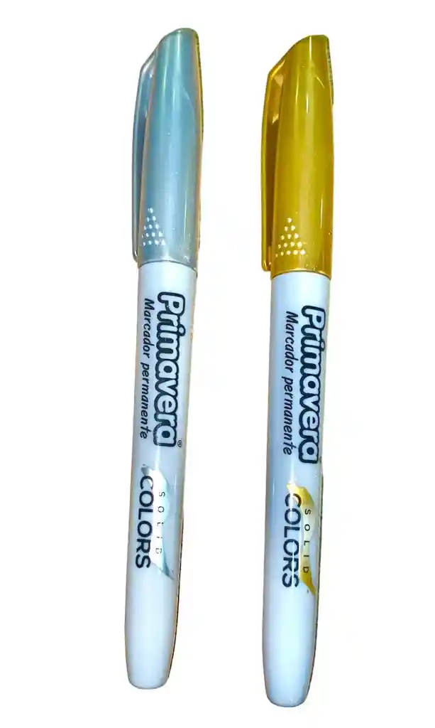 Estos marcadores tienen una tinta resistente al agua, de puntas finas 4.00 mm, de rapido secado que no se decolora, ideales para marcar en todo. Crea hermosos trabajos de arte y decoración con los espectaculares Marcadores Dorado y Plateado Permanentes Metal X 2 que sólo Primavera tiene para ti