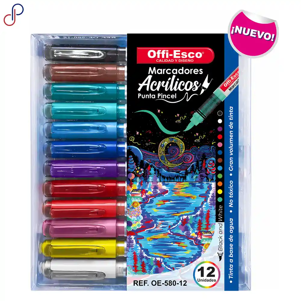 Marcadores Offi-Esco 580-12 Acrílicos Punta Pincel