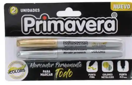 Con los Marcadores Permanentes Metal X 2 realizas hermosos trabajos de arte y decoración con una calidad insuperable, gracias a sus tintas no tóxicas, resistentes al agua, que no se decoloran, de rápido secado, alta durabilidad y con sus colores metálicos puedes marcar TODO lo que se te ocurra en la mayoría de las superficies. Cuenta con una punta más fina de 4 mm., cuerpo redondo y fácil agarre que te permitirán realizar trazos con mayor precisión y su presentación es de blister por 2 unidades. Crea hermosos trabajos de arte y decoración con los espectaculares Marcadores Permanentes Metal X 2 que sólo Primavera tiene para Tí. ¡No te los pierdas!