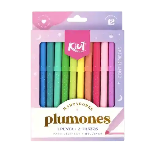 Incluyen 12 marcadores de colores vibrantes. Cuentan con una punta cónica resistente que permite realizar dos tipos de trazos: fino para delinear y grueso para rellenar. La tinta es lavable a base de agua, ideal para uso escolar y artístico. Están diseñados para ser no tóxicos y cuentan con tapa antiahogo para mayor seguridad.