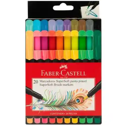 herramienta versátil y creativa, ideales para quienes disfrutan del dibujo, el lettering y la ilustración. Gracias a su punta pincel extra suave, permiten realizar trazos finos y gruesos con un solo marcador, adaptándose fácilmente a la presión de la mano. Su tinta a base de agua ofrece colores intensos, fluidos y de secado uniforme, perfecta para trabajar sobre papel y cartón. Además, cuentan con tapa anti-asfixia, brindando mayor seguridad durante su uso. Ficha técnica: Cantidad: 20 marcadores Punta pincel supersoft de alta precisión Trazos variables según la presión Tinta a base de agua Uso recomendado sobre papel y cartón Tapa anti-asfixia ¿Para qué sirve? Ideal para ilustración, lettering, journaling, bocetos y proyectos artísticos, tanto escolares como profesionales.