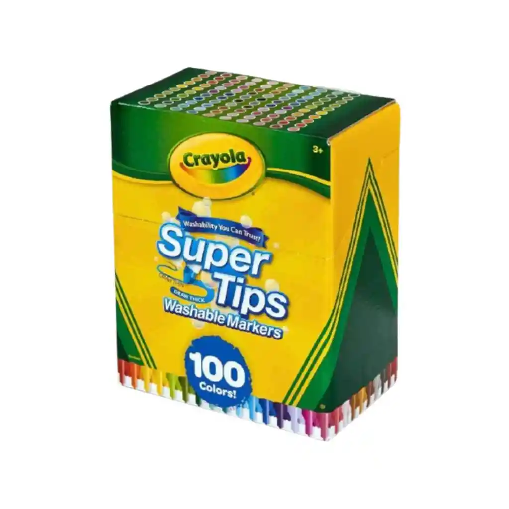 Los marcadores súper lavables de Crayola vienen en una variedad de 100 colores diferentes. La punta cónica permite realizar líneas finas y/o líneas más gruesas cuando se mantiene en ángulo. ¡Los Súper Tips son excelentes para proyectos escolares, lettering y para colorear!