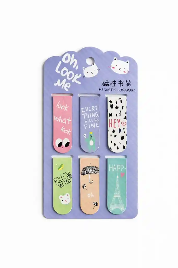 Set de marcapáginas magnéticos con diseños aleatorios, variados, divertidos y pasteles, ideales para libros, agendas y cuadernos. Incluye 6 marcapáginas por set, con imán resistente que sujeta firmemente las páginas sin dañarlas. Perfectos para estudio, oficina o regalo, combinan funcionalidad, estilo y creatividad en un accesorio práctico y original.