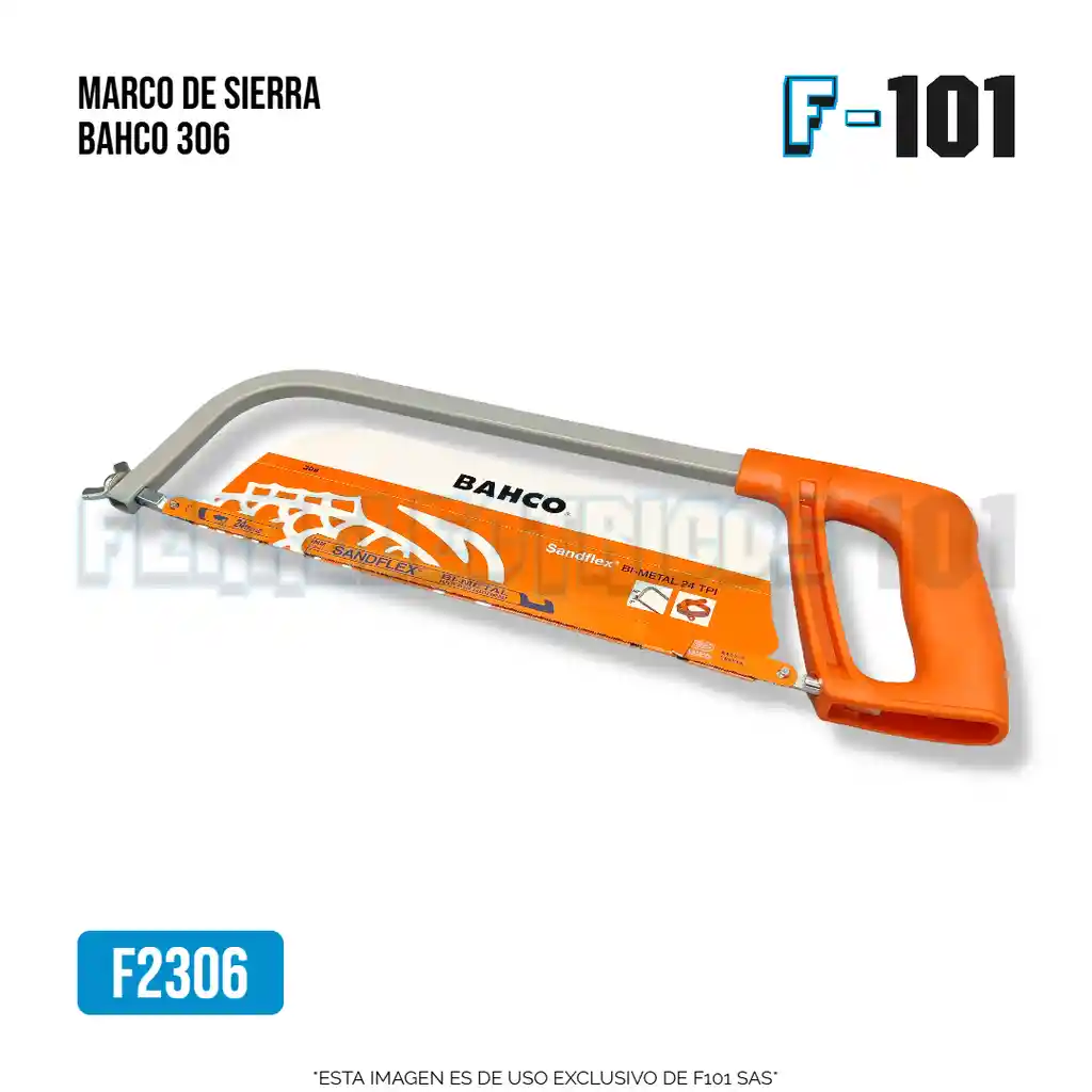 Marco de sierra ajustable Bahco 306, fabricado en acero tubular con mango ergonómico. Ideal para cortes precisos en metal y plástico.