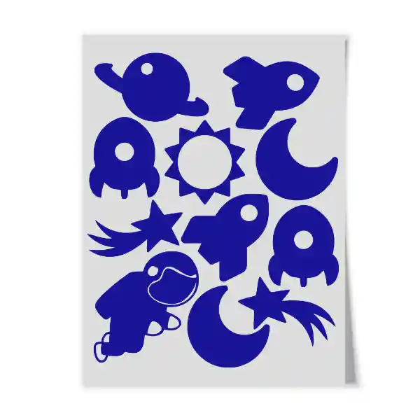 Figuritas Variadas Del Espacio Adhesivas Para Pared. Miden 7 cm Cada Una, Color Azul Rey.