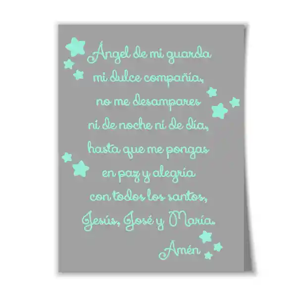 Oración al Ángel de la Guarda Adhesiva Para Pared 70 x 50 cm. Color Verde Menta