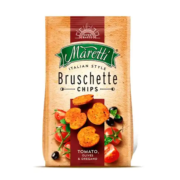 Las Bruschette Maretti Tomate son pequeños snacks de pan horneados, no fritos, que ofrecen una textura crujiente y un sabor intenso a tomate, aceitunas negras y orégano. Inspirados en la cocina mediterránea, estos chips de pan son elaborados con ingredientes naturales, sin conservantes, colorantes ni sabores artificiales, ideales para picar o acompañar.