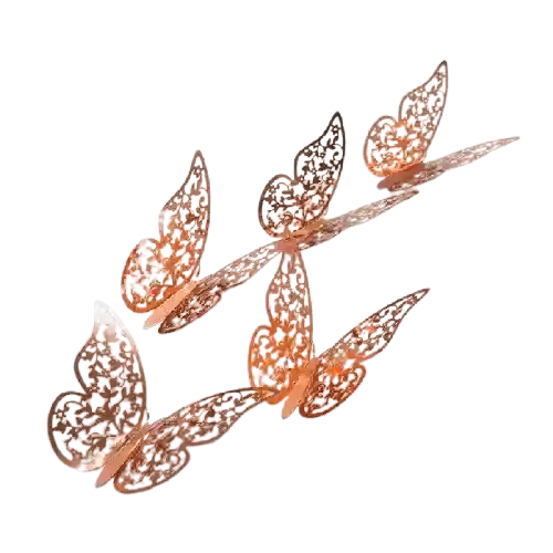 Mariposas decorativas 3D oro rosa x12 unds