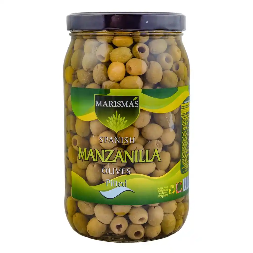 Aceitunas de manzanilla sin hueso en frasco. Peso después de escurrir: 1.82 kg (64 oz) | Listo para consumir | Almacenar en lugar seco y fresco | Producto importado de España.