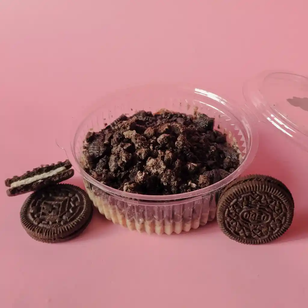 Capas de crema de oreo y galleta con Oreo trituradas como topping