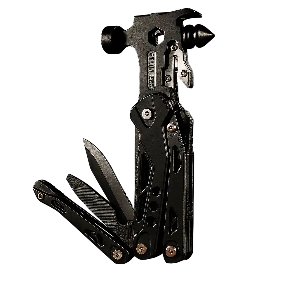 Herramienta Multifuncional Traveler – Compacta, práctica y lista para todo La Traveler Multi-Tool es una navaja multifuncional profesional creada para quienes buscan una herramienta confiable y resistente en todo momento. Su estructura de acero inoxidable de alta calidad combinada con paneles de aluminio anodizado proporciona resistencia estructural y protección frente al desgaste. Cada elemento plegable está diseñado para funcionar con precisión y estabilidad, permitiendo realizar tareas de corte, ajuste, agarre o apertura con facilidad. Su diseño compacto facilita el transporte diario, siendo perfecta para viajes, campamentos, trabajo mecánico, rescate o actividades outdoor. Incluye una funda táctica de cinturón para su transporte y una piedra de ferrocerio, lo que la convierte en una opción completa para situaciones de emergencia o supervivencia. Características técnicas: Estructura: Acero inoxidable y aluminio anodizado Longitud plegada: 11 cm aprox. Peso: 270 g aprox. Funciones: 10 a 14 herramientas Incluye: Funda táctica + piedra ferrocerio Color: Gris metálico o negro Diseño: Plegable con seguro de bloqueo Nota de garantía: Garantía de 30 días por defectos de fabricación. No cubre daños físicos, desgaste natural o uso inadecuado.
