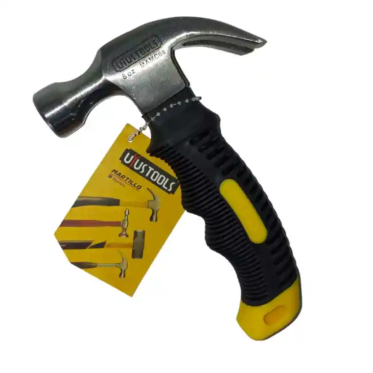 MARTILLO PROFESIONAL 8 ONZ CABO FIBRA Y GOMA Herramienta para golpear, en especial para clavar y extraer clavos, que consiste en una cabeza de hierro u otro metal duro, normalmente cuadrada o redonda por uno de sus lados y aguzada por el otro, con un mango, encajado en el centro de esta formando una T. CARACTERÍSTICAS • Forjado en Acero al Carbón • Tratamiento térmico • Peso de 11 onz. • Cabeza Pulida con cabo de Fibra recubierto con goma • Marca UYUSTOOLS