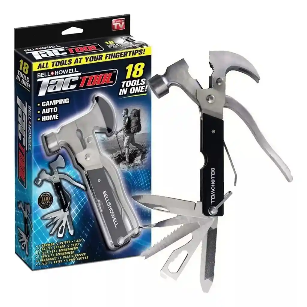 El Martillo Multiusos 18 en 1 es una herramienta compacta y versátil diseñada para cualquier situación, ya sea en el hogar, el trabajo o actividades al aire libre. Fabricado en acero inoxidable de alta calidad, ofrece gran resistencia a la corrosión y al desgaste, asegurando durabilidad a largo plazo. Además de su función como martillo, integra destornilladores, alicates, cortadores de alambre, lima, abrebotellas, sierra y cuchillo, entre otros, permitiendo realizar múltiples tareas con una sola herramienta. Su diseño ergonómico garantiza un agarre cómodo y seguro, mientras que su sistema de bloqueo mantiene cada herramienta en su lugar durante el uso. Ligero y compacto, es fácil de transportar y almacenar, convirtiéndose en un aliado indispensable para cualquier aventura o reparación. Ficha Técnica: Material: Acero inoxidable Peso producto: 376 g. aprox. Dimensiones: 16 cm x 9 cm x 3 cm ** _Para defectos de fábrica o retractos: \**_Por favor revise el producto apenas lo reciba y antes de usarlo. No aplican ley de retracto o defectos de fábrica luego de usar el producto. Se manejan máximo 5 días para reportar defectos de fábrica (por ejemplo, producto funciona mal, piezas faltantes, rotas, etc). Para hacer efectiva la devolución el producto debe devolverse con el empaque original, el cual debe estar en buen estado, incluir todos los documentos y las partes completas y sin daños.