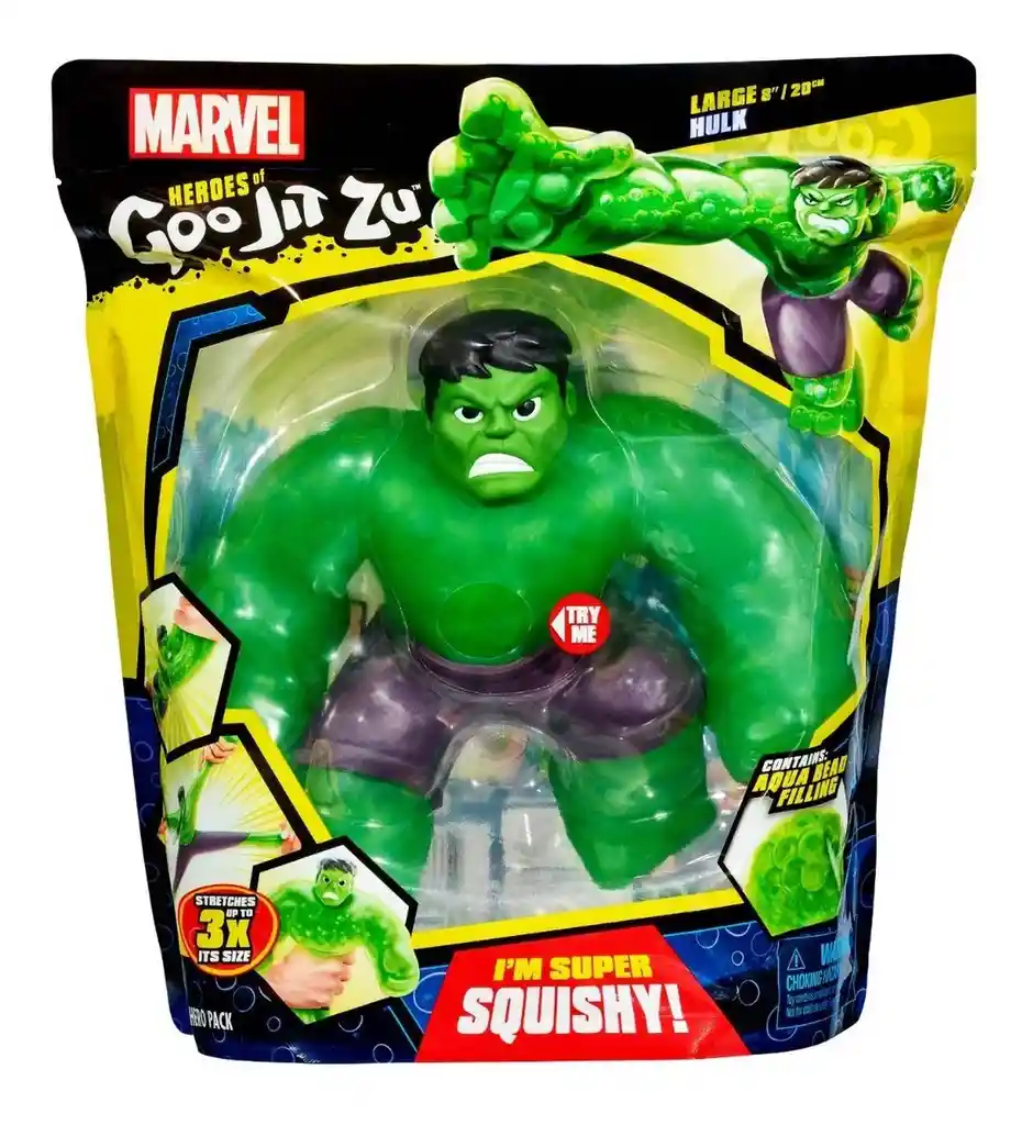 America Store te trae Hulk Heroe de Marvel de Lujo Goo Jit Zu 20cm ¡Ahora tus personajes favoritos de Marvel se han unido a Heroes of Goo Jit Zu para convertirse en los héroes más blandos, elásticos y pegajosos de todos los tiempos! Cada personaje de Action Fig tiene un relleno pegajoso único con una textura y sensación diferentes. ¡Echa un vistazo a Hulk en una forma que nunca antes habías visto! ¡Aprieta su cuerpo y observa cómo se estira y aplasta su relleno de gotas de agua único! ¡Súper duradero, el cuerpo elástico de Hulk puede estirarse hasta 3 veces su tamaño y luego volver a su forma original! ¡Colecciona todos los héroes de Goo Jit Zu Marvel, incluidos Iron Man, Capitán América, Spiderman, Groot, Venom y Black Panther! (cada uno se vende por separado).