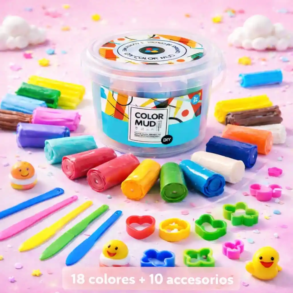 Despierta la creatividad de los más pequeños con esta masa moldeadora tipo plastilina, ideal para jugar, aprender y crear sin límites. Su textura suave y fácil de moldear permite realizar múltiples figuras mientras estimula la imaginación, la motricidad fina y la coordinación. Incluye una amplia variedad de colores y accesorios que hacen el juego más divertido y completo, perfecta para uso en casa, colegios o actividades recreativas. Incluye: •18 barras de masa moldeadora en colores surtidos •10 accesorios para moldear y crear figuras. Características: Masa suave y fácil de moldear Colores vivos y llamativos Ideal para actividades creativas y educativas Ayuda a desarrollar la imaginación y habilidades manuales Presentación práctica para almacenar y transportar. ⚠️ Nota importante: Los personajes, figuras o elementos decorativos (patitos, figuras armadas u otros) que aparecen en las imágenes son solo para ambientación y no están incluidos en el producto. Contenido: 1 set (18 colores + 10 accesorios)