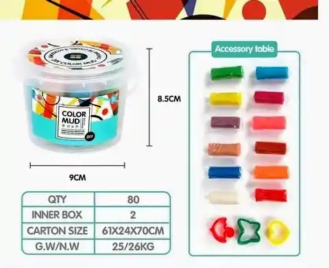 Despierta la creatividad de los más pequeños con esta masa moldeadora tipo plastilina, ideal para jugar, aprender y crear sin límites. Su textura suave y fácil de moldear permite realizar múltiples figuras mientras estimula la imaginación, la motricidad fina y la coordinación. Incluye una amplia variedad de colores y accesorios que hacen el juego más divertido y completo, perfecta para uso en casa, colegios o actividades recreativas. Incluye: •18 barras de masa moldeadora en colores surtidos •10 accesorios para moldear y crear figuras. Características: Masa suave y fácil de moldear Colores vivos y llamativos Ideal para actividades creativas y educativas Ayuda a desarrollar la imaginación y habilidades manuales Presentación práctica para almacenar y transportar. ⚠️ Nota importante: Los personajes, figuras o elementos decorativos (patitos, figuras armadas u otros) que aparecen en las imágenes son solo para ambientación y no están incluidos en el producto. Contenido: 1 set (18 colores + 10 accesorios)