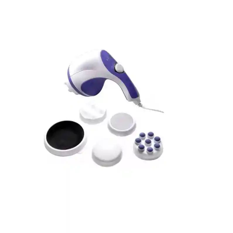 **Características principales:** - **Diseño ergonómico:** Fácil de manejar para llegar a distintas áreas del cuerpo. - **Funcionamiento silencioso:** Perfecto para relajarte sin molestias. - **Sistema de vibración:** Estimula los músculos y mejora la circulación. - **Alta velocidad:** Realiza giros a más de **2,700 revoluciones por minuto**, proporcionando un masaje profundo y efectivo. - **Versátil:** Ideal para trabajar en el abdomen, glúteos, muslos, piernas, brazos y espalda. - **Sesiones recomendadas:** De **10 a 30 minutos diarios** para mejores resultados. **Contenido del paquete:** - **1 Masajeador Relax Tone.** - **4 cabezales intercambiables:** - Para masajes específicos según tus necesidades. - **1 Manual instructivo:** Guía de uso práctico y seguro. Disfruta de una experiencia de masaje profesional desde la comodidad de tu hogar. Ideal para aliviar tensiones, tonificar y relajarte.