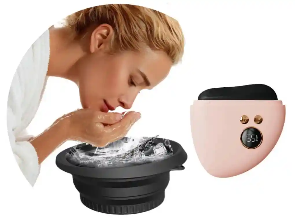 Transforma tu rutina de cuidado facial con el Masajeador Eléctrico INNOVO+ y Cubo de Hielo Facial, el dúo perfecto para rejuvenecer y tonificar tu piel. El masajeador inteligente cuenta con 5 niveles de vibración y sensor de temperatura digital, ideal para estimular la circulación, aliviar tensión muscular y mejorar la absorción de cremas y sueros. Su diseño ergonómico en forma de montaña se adapta perfectamente a las curvas del rostro, cuello y cuerpo. Complementa tu rutina con el cubo de hielo facial plegable de silicona grado alimenticio, resistente a altas temperaturas, perfecto para terapia fría, reducción de poros, control de grasa y efecto lifting inmediato. Compacto, recargable y portátil, este kit es tu aliado diario para una piel más firme, luminosa y descansada. Ficha Técnica Profesional: Masajeador Eléctrico Material: ABS + Piedra volcánica Pantalla: Digital LED con indicador de temperatura Niveles de vibración: 5 niveles de frecuencia ajustable Rango de temperatura: 38 °C – 65 °C Funciones: Masaje facial y corporal Relajación muscular Estimulación de colágeno Control de temperatura y calor terapéutico Carga: USB (batería recargable) Autonomía: Hasta 90 minutos de uso continuo Medidas: 9 × 7 × 3 cm Peso: 120 g aprox. Cubo de Hielo Facial Material: Silicona grado alimenticio (BPA Free) Diseño: Plegable y resistente a altas y bajas temperaturas Medidas: 26 × 23 × 10 cm (abierto) / 26 × 3 cm (plegado) Uso: Lavado facial con hielo Terapia de frío para piel y cuerpo Reducción de inflamación y cierre de poros Alivio de fatiga ocular y refrescamiento facial Color: Negro Capacidad: 200 ml aprox. Beneficios Clave: Rejuvenece y reafirma la piel del rostro Reduce poros, líneas finas y signos de fatiga Masaje con calor o frío para mejorar la circulación Portátil, ergonómico y fácil de limpiar Ideal para uso diario y rutinas de spa en casa