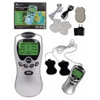 La estimulación del equipo por 15 minutos equivale a 115 abdominales. Proporciona beneficios médicos. Ayuda a reducir el estrés. Relaja los músculos después de una larga jornada de trabajo o deporte Alivia los dolores crónicos. Causados por mala postura al dormir o exceso de trabajo o Deporte Mejora la circulación. Quita la torticolis o espasmos Te permite desarrollar 8 niveles de tratamientos diferentes. Terapias de 15 minutos automáticas Sienta la sensación después de cada terapia como si hubieras estado en el gym Fácil de operar. Funciona con toma corriente de 110 Vts o 4 pilas triple AAA. Incluidas para la comodidad portátil 8 electrodos para masajear. Fácil de llevar y limpiar. Ideal para un detalle para un ser querido o uso personal CONTENIDO DE LA CAJA Equipo Gym pasiva Juego de baterías Cable usb Adaptador corriente