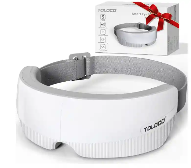 ====================================== Bienvenido/a nuestra tienda ELH COLOMBIA: "¡De la pantalla a tu hogar!" ====================================== Alivio profundo de la fatiga ocular: el masajeador inteligente de ojos utiliza masaje de vibración y presión para simular técnicas de masaje humano, presionando con precisión puntos de acupuntura alrededor de los ojos, suave y potente, con fuerte penetración. Alivia rápidamente los ojos secos, astringentes, cansados y las migrañas durante 15 minutos por día. Alivia profundamente la fatiga ocular y disfruta de un día relajante Diseño multifuncional: operación con un botón, 5 modos, proporcionando diferentes experiencias de masaje para los ojos. Admite conexión Bluetooth (Nombre: masajeador de ojos), lo que le permite reproducir su música favorita conectándose a Bluetooth Cómodo masajeador de ojos con calor: compresa caliente de temperatura constante de 108 ° F, temperatura cómoda, tan cómoda como aplicar una toalla caliente, penetrar suavemente alrededor de los ojos, promover la circulación sanguínea y salvar los ojos de panda. Nota: Los masajeadores de ojos no son adecuados para personas que se han sometido a cirugía ocular, enfermedades de la retina, cataratas, glaucoma, etc Batería de larga duración: el masajeador de ojos TOLOCO funciona hasta 2-3 horas. Equipado con un cable USB (excluyendo el enchufe de carga), se puede cargar fácilmente en cualquier momento y en cualquier lugar. Después de un uso continuo durante 15 minutos, el masajeador de ojos dejará de funcionar automáticamente, proporcionando protección para tu salud y protegiendo eficazmente la duración de la batería Diseño único de función de memoria: el instrumento masajeador de ojos TOLOCO viene con un diseño único de función de memoria, lo que significa que si quieres usar el mismo modo de manera consistente, solo necesitas ajustar al modo que deseas usar la primera vez que lo uses. La próxima vez que lo abra de nuevo, no necesita reajustar el modo Fácil de transportar: el diseño portátil ajustable de 180 ° se puede plegar en tamaños más pequeños, por lo que es muy fácil de transportar y usar para masajes diarios o viajes Regalo ideal para las fiestas: material proteico agradable para la piel, diseño de masaje multifuncional y embalaje exquisito para ayudar a los usuarios a aliviar la fatiga ocular, perfecto para regalos del Día del Padre, regalos de cumpleaños, regalos de Navidad y regalos de aniversario