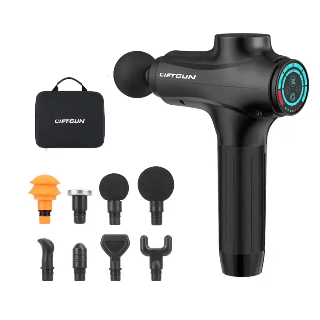 ¡LiftGun Reinventa el Masaje! Atrévete a sentir la diferencia con nuestro modelo LiftGun PRO -nuestro modelo profesional- su tecnología Impact Therapy que combina una alta potencia con un diseño liviano y silencioso, para que tus músculos se relajen DE VERDAD. Úsala al terminar tu entrenamiento para acelerar tu recuperación o después de un largo día de trabajo para relajar tu espalda, en cualquier caso estará lista para cuidar de tus músculos y hacerte sentir mejor. Pero, ¿De verdad funciona? Oh Yeah, a diferencia de otras pistolas masajeadoras, el modelo PRO destaca por sus 30 NIVELES DE INTENSIDAD y una potencia de 1800 - 3400 rpm para lograr una mayor profundidad en las zonas masajeadas. En palabras simples: Se siente MUY BIEN. LiftGun PRO se diseñó pensando en deportistas por eso incluye 8 cabezales, además de los básicos encontrarás dos cabezales PREMIUM: Cabezal DUAL: tiene una superficie acolchada para tratar zonas o músculos sensibles, te servirá para soltar tus músculos luego de un entrenamiento intenso. Esta superficie puede ser retirada para dejar un cabezal rígido para liberar la presión de puntos gatillo. Cabezal Metálico Plano: se utiliza para aplicar aceites como complemento de una terapia relajante. Relax TOTAL Estamos hablando de relajarnos, así que en LiftGun PRO utilizamos un motor Brushless que disminuye el ruido de funcionamiento y al mismo tiempo alarga la vida útil de tu masajeador ya que tiene un desgaste menor. ¿Y la batería que tal anda? El modelo PRO cuenta con una batería de 2500 mAh para una larga duración, te permitirá disfrutar de hasta cuatro sesiones completas de masaje intenso con una sola carga (30 min/sesión). ¡Llévala donde quieras! Incluye un estuche para llevarla a cualquier lugar con todos sus accesorios, sin riesgos de perder alguna de las piezas. -------------------------------------------------------------------------------- FICHA TÉCNICA - 30 Niveles de Intensidad. - Modelos: Negro, Fibra de carbono y Negro sólido - Potencia: 1800 - 3400 rpm. - Batería recargable. Duración 2 - 4 horas. - Peso: 800 g pistola masajeadora y 1600g todo el estuche. - Incluye 08 cabezales intercambiables. - Incluye estuche para transporte. -------------------------------------------------------------------------------- RANGOS DE INTENSIDADES - 1 a 7 Masaje Fácil - 8 a 15 Movilización de ácido Láctico - 16 a 24 Masaje Profundo - 25 a 30 Masaje Profundo -------------------------------------------------------------------------------- QUE VIENE EN LA CAJA - 1 Pistola de Masaje LiftGun PRO - 8 cabezales intercambiables - 1 Cargador - 1 Estuche de transporte - 1 Manual de usuario **LIFTGUN® es distribuida en Colombia y Sudamérica exclusivamente por Builder Commerce SAS** -------------------------------------------------------------------------------- PREGUNTAS FRECUENTES ¿Los productos tienen garantía? Sí. Todos nuestros productos cuentan con 6 meses de garantía limitada contra defectos de fabricación. ¿El precio indicado incluye IVA? Si, si incluye IVA el precio publicado.