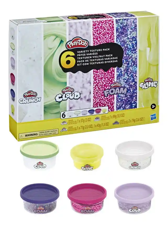 America Store te trae Masas Y Plastilinas Play-doh Pack De Texturas Variadas Hasbro Características destacadas Plastilinas Foam, Super Cloud, Crystal Crunch y Slime Siente la diversión Slime amarilla y Crystal Crunch blanca Super Cloud viene en color verde y en color morado claro 2 botes vienen con plastilina color rosado y multicolor Divertidos Colores y Texturas Resumen del producto Este set de plastilinas Foam, Super Cloud, Crystal Crunch y Play-Doh Slime incluye toda una variedad de divertidas texturas y colores para disfrutar. Es toda una fiesta para los ojos y las manos de los pequeños. También es un fabuloso regalo o juguete táctil para que los niños a partir de 3 años jueguen y compartan con otros.