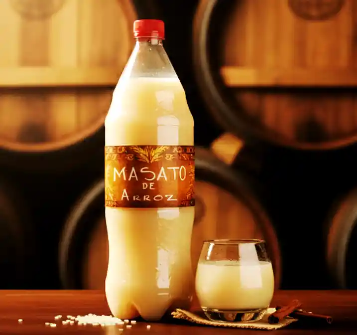 Masato de arroz completamente natural y fresco sin conservantes ni bebidas alcohólicas agregadas. Solo por el 30 y el 31 de diciembre oferta se entrega un litro por botella comprada.