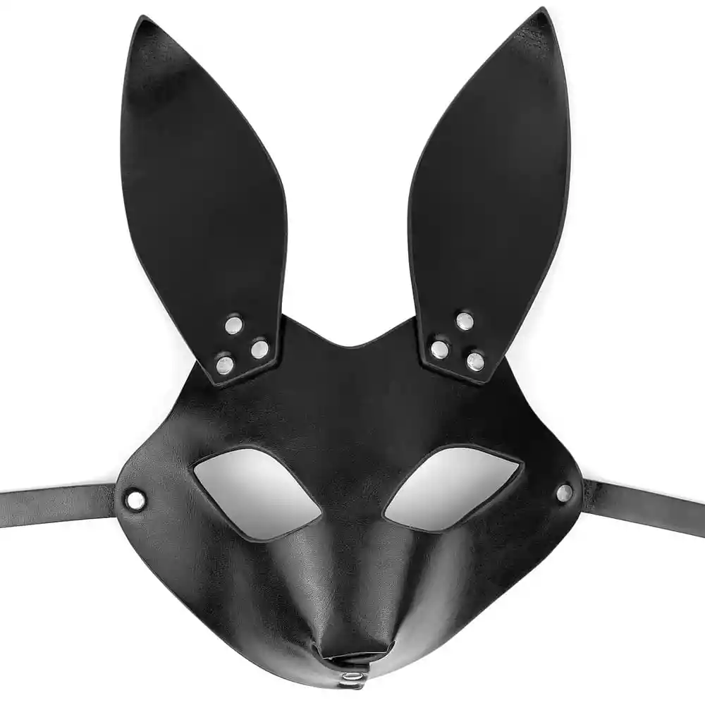 mascara de Bondage de cuero , cubrebocas de cara completa, desmontable, con orejas largas de conejo, mascarillas sexuales BDSM