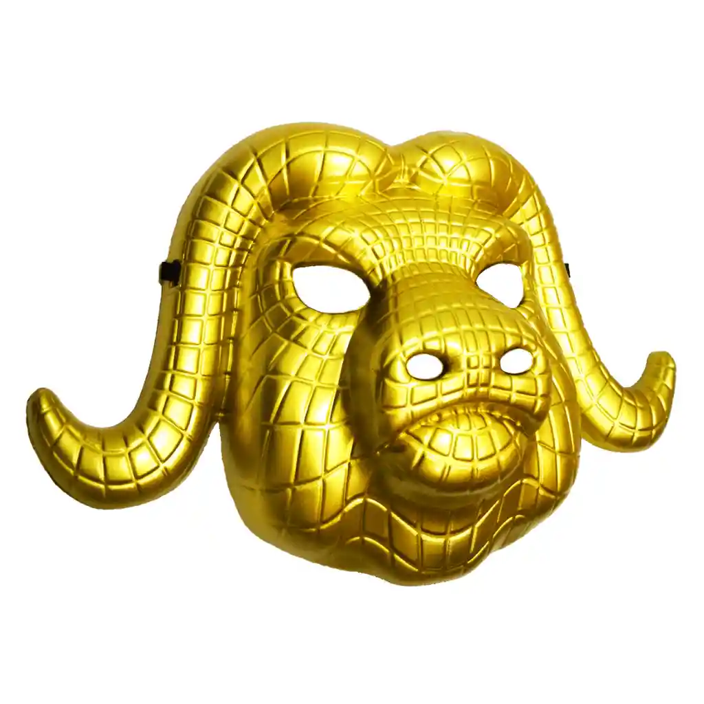 Inspirada en la serie El Juego del Calamar, esta máscara dorada de búfalo combina poder y elegancia. Con diseño imponente, es ideal para disfraces únicos, fiestas temáticas o Halloween. ¡Destaca con estilo y misterio!