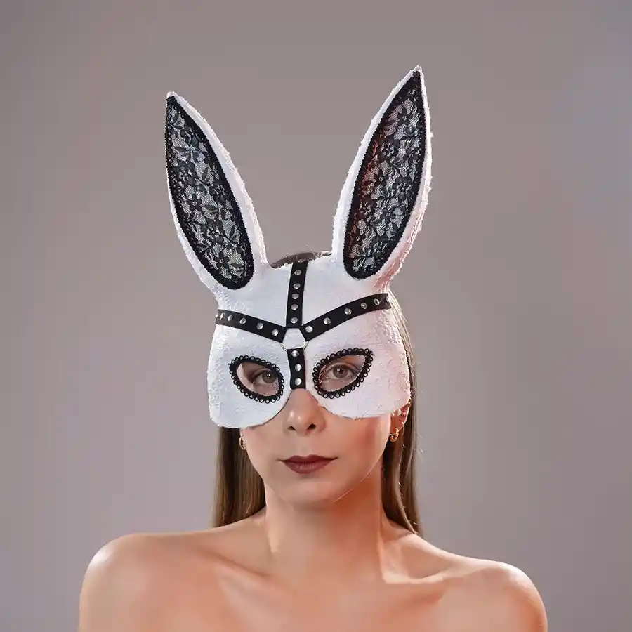 Máscara sexy con orejas de conejo, decorada en encaje y con un pequeño listo negro para un toque rudo. Las máscaras son perfectas para tus shows, complementar tus atuendos o disfraces o para una noche BDSM. Características: • Color: Blanca y negro. • Material: 70% Plástico 30% polyester • Peso: 136 gr • Largo total: 30.5 cm • Ancho: 23 cm • Ancho de la cara: 19 cm Importante: Las mascarás no tienen garantía por desprendimiento de perlas o taches.