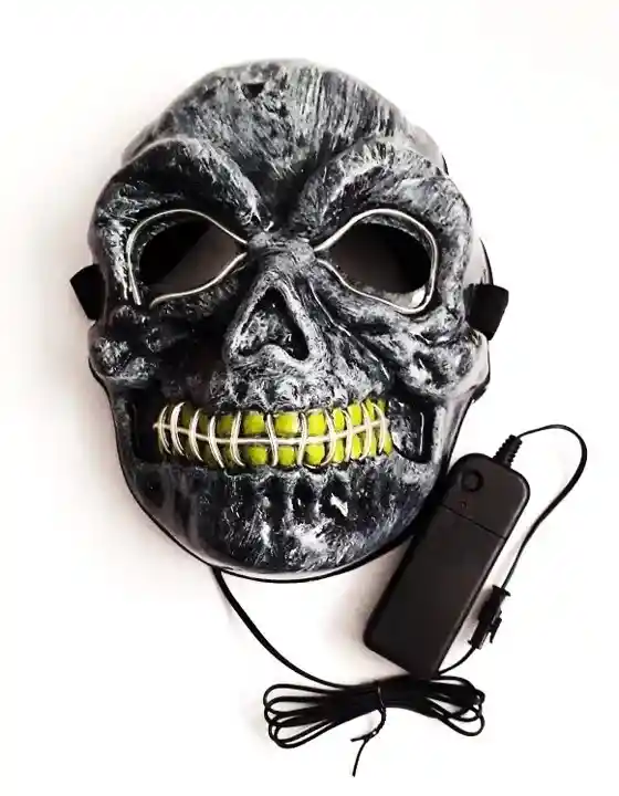 "SOLO QUEDA 1 UNIDAD DE ESTE PRODUCTO Mascara Calavera Negra con luz led en ojos y dientes para Hora Loca, Halloween, Carnaval 2909-41"