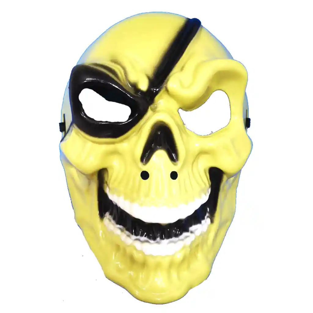 Máscara calavera con parche, estilo pirata. Ideal para disfraces temáticos, Halloween y fiestas de aventura. Material resistente y ajuste cómodo.