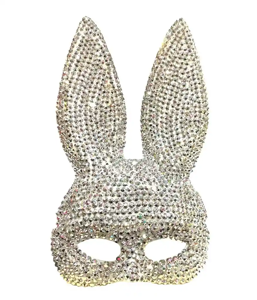 🐰💋 Máscara Coneja Con Pedrería Brillante Plateada Halloween Carnaval