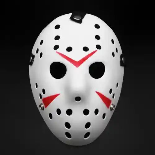 Clásica máscara de hockey inspirada en Jason Voorhees, el temido personaje de la saga Viernes 13. Con acabado blanco, perforaciones y marcas rojas, es perfecta para disfraces de terror, Halloween, cosplay o decoración temática. Fabricada en material ligero y resistente, con correas ajustables para un uso cómodo y seguro.