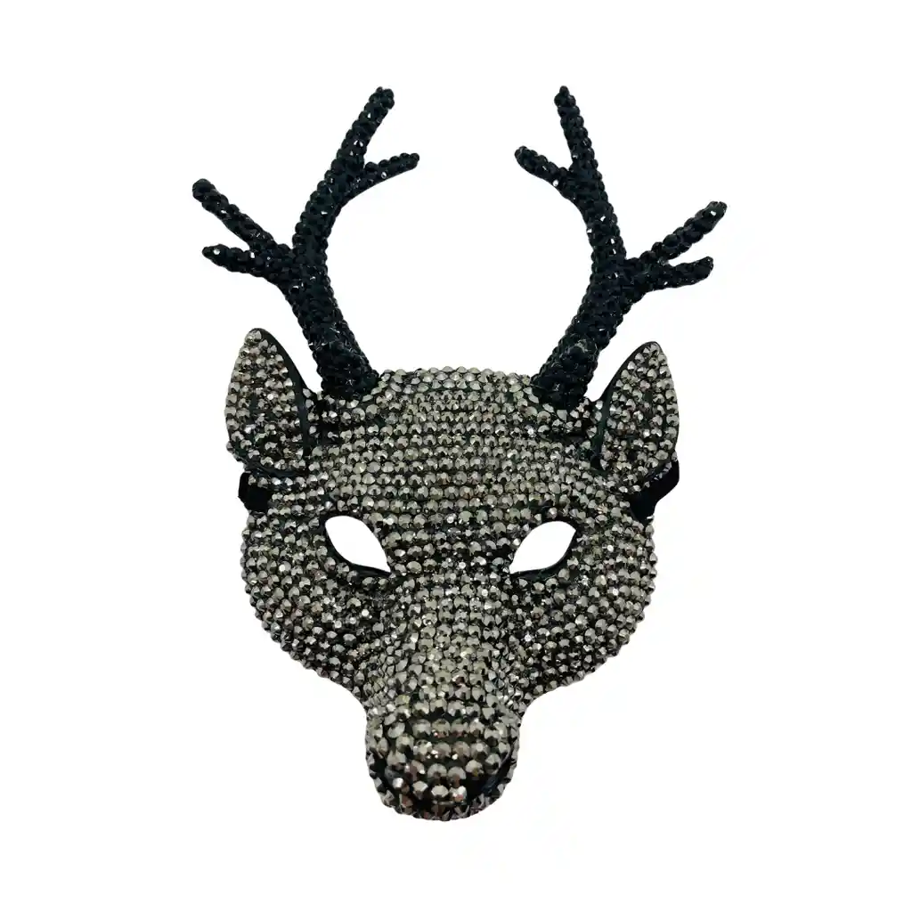Máscara de venado decorada con perlas brillantes, de estilo elegante y único. Ideal para fiestas temáticas, eventos artísticos o disfraces creativos. Talla única y ajuste cómodo.