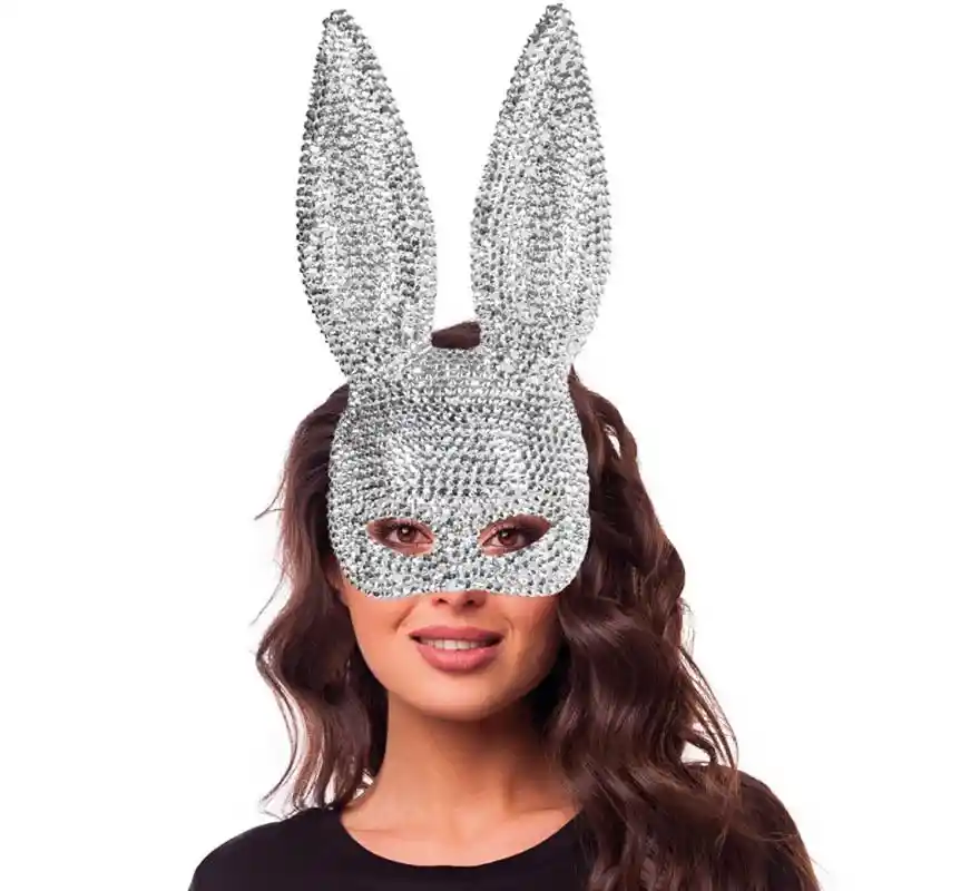 mascara de conejo viene con elástico para ajustar para adultos diseño con diamantes de plastico mascara en material plastico tal cual las fotos