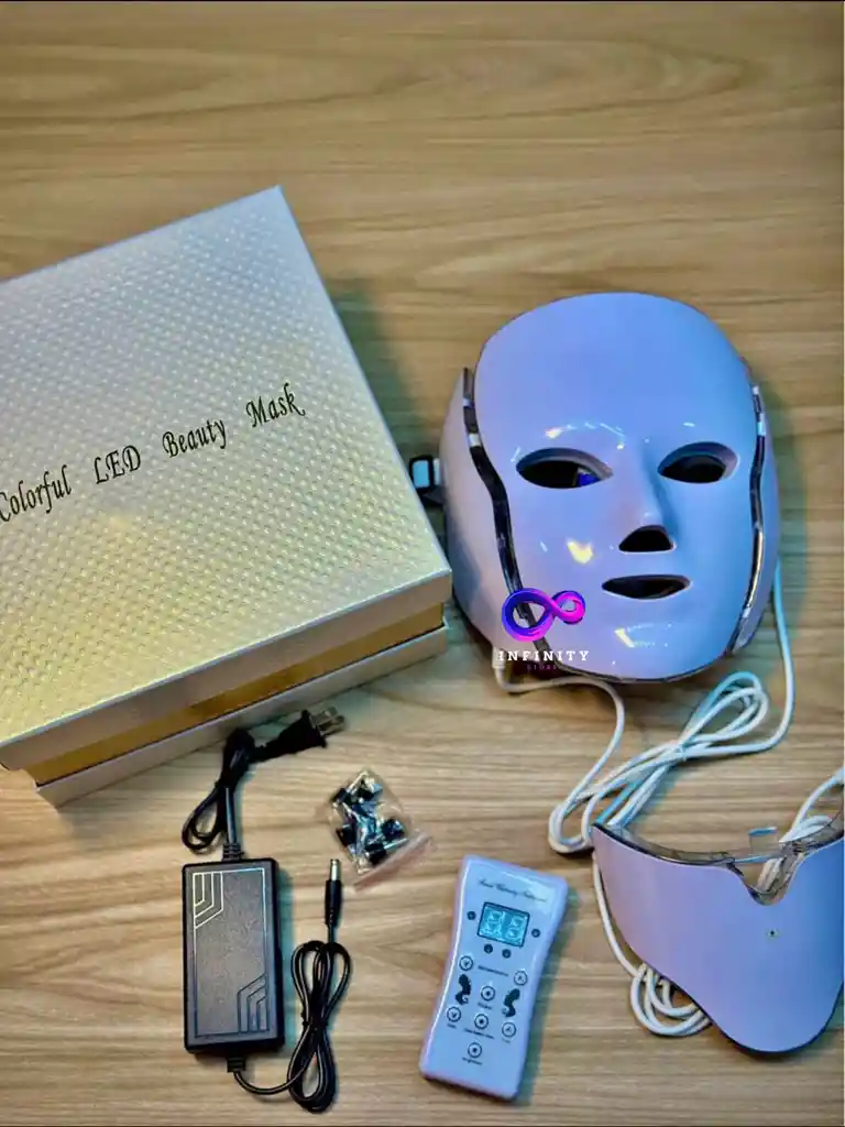 Es un aparato que utiliza diodos emisores de luz de baja intensidad capaces de emitir luz similar a la del sol, pero suprimiendo los rayos ultravioletas. Este singular equipo de tratamiento luminoso desarrolla cuatro terapias identificadas por cuatro colores en su emisión; rojo, azul, amarillo y verde. Teniendo en cuenta que la piel consta de tres capas, siendo la epidermis la capa externa, la dermis la intermedia y la subcutánea la capa interna de la piel, se aplican sesiones de luz sobre la zona a tratar. COLOR ROJO: penetran en las capas superiores de la piel estimulando la creación de colágeno y elastina, reactivando la regeneración celular. Repara tejidos maltratados, suaviza líneas de expresión, reduce arrugas, poros grandes, manchas y ojeras. COLOR AZUL: penetra en los poros eliminando las bacterias que causan acné (porfirinas), comedones y pústulas. También recomendada para poros excesivamente dilatados y granos producidos por el estrés o cambios hormonales. COLOR VERDE: ayuda a regenerar los nutrientes de la piel dañada por el sol y la edad. Está indicada para reparar y equilibrar las pieles pigmentadas, eliminar las manchas provocadas por el sol y la edad. COLOR AMARILLO: reduce el enrojecimiento (cuperosis) y la irritación estimulando la circulación linfática con una recuperación rápida. Se mejora la textura, la resistencia, la suavidad y la calidad de la piel. También estimula el sistema nervioso, mejora el sistema inmunitario COLOR PURPURA: ayuda a eliminar las toxinas, equilibra y regenera tejidos, el resultado es un efecto de rejuvenecimiento general de la piel, perfecto para desimflamacion y postoperatorio por sus cualidades regenerativas. COLOR TURQUESA: proporciona relajación y suministro de oxigeno en las membranas y poros, activando el metabolismo generando luminosidad y un tono radiante a la piel, mejora el tono muscular y tisular. COLOR BLANCO: genera penetración de sustancias bajo la piel, activa el metabolismo y devuelve el tono natural de tu piel por exposición al sol y ayuda a la cicatrización. tiene propiedades antiinflamatorias y consigue un efecto relajante. Tratamiento indoloro y sin efectos secundarios No existen efectos secundarios, ni es necesario reposo tras cada sesión y el tratamiento es completamente indoloro. Por otra parte el aparato puede utilizarlo el propio usuario sin necesidad de supervisión y este aparato no necesita ningún tipo de mantenimiento. CARACTERÍSTICAS DEL PRODUCTO: - Efecto des inflamatorio - Efecto antimicótico y antibacteriano - Efecto cicatrizante - Estimula la creación de colágeno y elastina - Elimina arrugas, líneas de expresión y envejecimiento prematuro - Elimina manchas, pecas, enrojecimiento, hiperpigmentación - Aumentan la luminosidad de la piel - Proporciona relajación y descanso para músculos faciales - Cierra poros y elimina el exceso de grasa. - Pantalla táctil completa (4 programas incluidos) - Programa de Control de Potencia Máxima - Diseño inteligente. - Frecuencia ajustable. - Dimensiones: 23 x 13 x 5 cm aproximadamente Tipo: PDT Color: Blanco Voltaje: 110V-220V, 60Hz / 50Hz Peso: 1,1 kg Área de Tratamiento: Facial TE ENTREGAMOS: 1 Mascara + CUELLO led de 7 colores, 1 Control de programación (tiempo, intensidad y terapia) 1 Cable conector de mascara, 1 Cable conector a corriente, 1