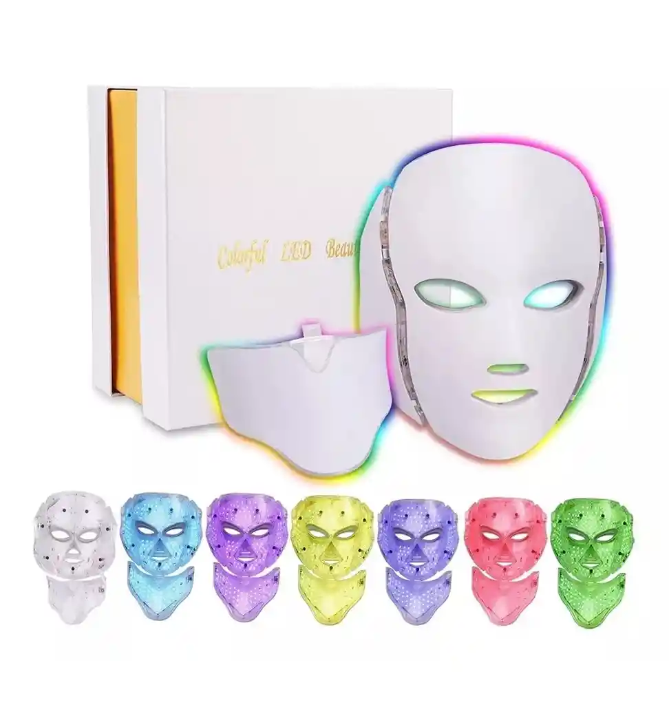 La Máscara LED es un innovador tratamiento estético diseñado para rejuvenecer la piel sin dolor ni calor, estimulando la regeneración celular y acelerando la cicatrización. Con sesiones de 30 minutos, se recomienda su uso semanalmente, siendo necesarias alrededor de seis para obtener resultados óptimos. Sus beneficios incluyen la producción de colágeno, reducción del acné y de la secreción sebácea, mejora de rojeces, arrugas finas y flacidez, además de favorecer el drenaje y revitalizar la piel. Ideal para pieles sensibles, este tratamiento no invasivo es cómodo y no requiere tiempo de recuperación. Cada color de la Máscara LED ofrece un tratamiento específico para distintas necesidades de la piel: la luz roja repara tejidos dañados, reduce arrugas, líneas de expresión y ojeras, estimulando la producción de colágeno y elastina; la luz azul es ideal para pieles acneicas, eliminando bacterias y reduciendo poros dilatados; la luz verde ayuda a tratar manchas y acelera la regeneración celular; la luz amarilla disminuye el enrojecimiento y la irritación, promoviendo la circulación linfática; la luz azul índigo favorece la cicatrización, especialmente en casos de acné; la luz morada limpia y rejuvenece, reduciendo la tensión cutánea; y la luz blanca acelera el metabolismo, mejorando líneas finas y flacidez. El producto incluye: 1 máscara facial LED, 1 máscara de cuello, 1 control remoto, 1 adaptador, 1 manual de usuario completo en inglés. Ficha Técnica: Tipo de artículo: máscara facial LED Material: ABS Color DE LA LUZ LED: 7 colores Voltaje: 100V-240V, 50Hz-60Hz Voltaje de salida: DC12V 2000mA Número de luces LED: 192 Peso de la máquina: 665G Tamaño: 20,5*23cm/8,07*9.06in ** _Para defectos de fábrica o retractos: \_Por favor revise el producto apenas lo reciba y antes de usarlo. No aplican ley de retracto o defectos de fábrica luego de usar el producto. Se manejan máximo 5 días para reportar defectos de fábrica (por ejemplo, producto funciona mal, piezas faltantes, rotas, etc). Para hacer efectiva la devolución el producto debe devolverse con el empaque original, el cual debe estar en buen estado, incluir todos los documentos y las partes completas y sin daños.