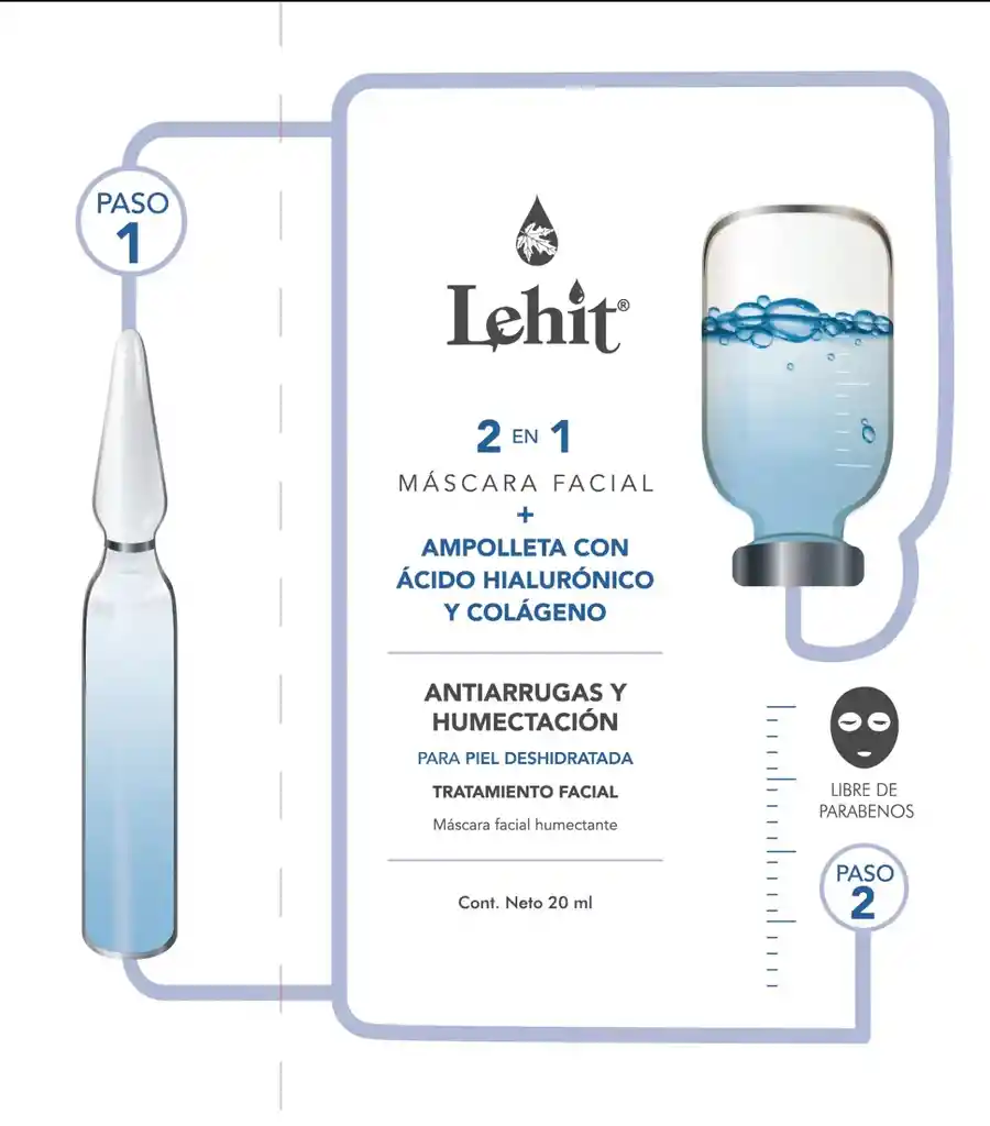 Mascara Facial 2 en 1 + Ampolleta Con Colágeno y Acido Hialurónico Para Piel Deshidratada Antiarrugas y Humectación Tratamiento Facial Sin Parabenos