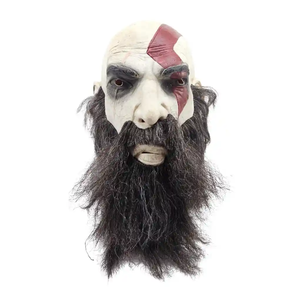 Imponente y legendaria, esta máscara de látex inspirada en Kratos te transforma en el temible Dios de la Guerra. Ideal para disfraces épicos o fans de la saga God of War.