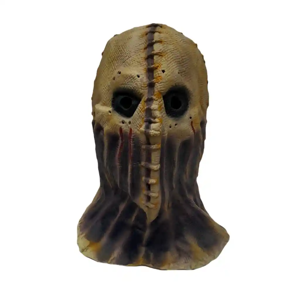 Máscara de látex espantapájaros con detalles realistas y textura aterradora. Perfecta para disfraces de terror, Halloween y eventos temáticos. Flexible, cómoda y resistente.