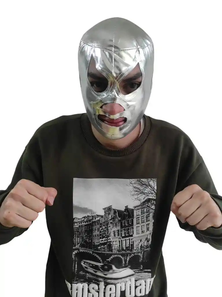 Mascara Mexicana Luchador Tela Disfraz Color Antifaz Plateada