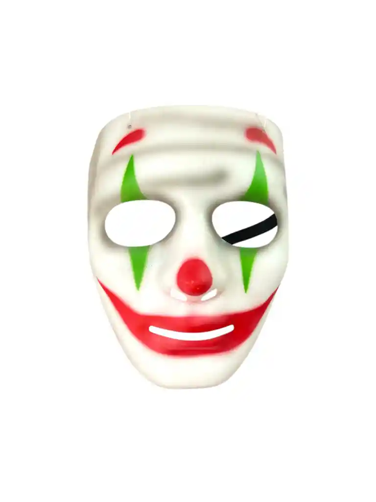 Mascara Payaso Blanco con Detalles Verdes y Rojos Diseño de payaso Terror con sonrisa . Sus colores brillantes contrastan con una expresión siniestra. Ideal para fiestas, o disfraces terroríficos en hallowen