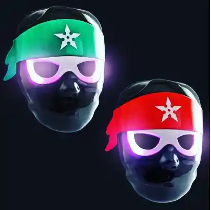 Los ninjas necesitarán el mejor equipo y vestimenta para poder hacer bien su trabajo, así que si quieres ser ¡Primero debes vestirte como tal! Las máscaras de poliéster iluminadas son el accesorio perfecto para realizar misiones secretas, jugar con amigos. Están surtidos entre rojo y verde. Material: LED, poliéster Longitud: 2,5 pulg. Ancho: 7,125 pulg. Alto: 9 pulg.
