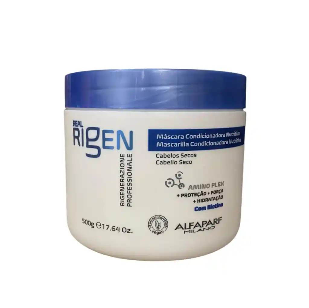 Alfaparf Real Rigen Nutritive - Mascarilla Acondicionadora Nutritiva 500g Mascarilla acondicionadora nutritiva para cabello normal o seco. Tratamiento especial para una regeneración capilar intensa e inmediata. La nueva generación de la línea clásica de Alfaparf Milano, ahora con una nueva fórmula vegana. Perfecto para uso diario. Modo de Uso Después de lavar el cabello con Real Rigen Nourishing Shampoo, dependiendo de las necesidades del cabello, distribuir Real Rigen Nourishing Conditioning Mask en toda la longitud, masajear y peinar. Déjalo actuar durante 5 minutos y enjuaga. MECHU2 PELUQUERÍAS Nuestro Cumplimiento y Calidad es nuestra mejor presentación, Productos 100% Originales! Compra con la seguridad que recibirás toda la asesoría de expertos Técnicos Capilares certificados en cuidado y estética. MECHU2 PELUQUERÍAS