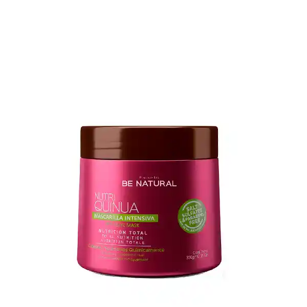 ¡Nutre, recupera y cuida el cabello tinturado! La Mascarilla Be Natural Nutri Quinua ayuda a nutrir y fortalecer el cabello tratado químicamente, también previene y evita la perdida de color del cabello tinturado retrasando el proceso de oxidación del tallo capilar. Además, este tratamiento para el cabello dañado cuenta con ingredientes naturales que ayudan a hidratar el pelo decolorado y maltratado, evitando el quiebre de la fibra capilar dejándolo suave, brillante y sedoso.