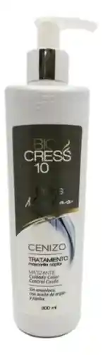 La MASCARILLA CAPILAR CENIZO X300 ML - BIOCRESS es un tratamiento matizante diseñado para proteger y mantener los tonos rubios cenizos, evitando tonos amarillos no deseados y proporcionando hidratación y brillo al cabello