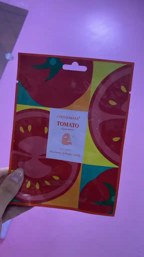 Mascarilla Hidratante Agua de Tomate Chovemoar Con esta mascarilla tendrá la solución secreta que brinde una piel radiante nunca antes vista. Extrayendo la esencia de frutas y verduras naturales, hidratando y restaurando su piel. La esencia penetra profundamente su piel. Recupere su piel, haciéndola suave, tierna e hidratante, disfrutando y reconfortando la piel hermosa todos los días.